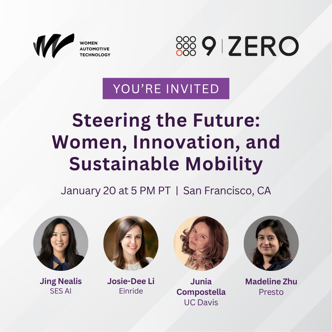 ​Join Women in Automotive Technology (WAT) and 9Zero’s 🌐 EV/AV Cluster for an evening exploring the future of sustainable transportation.