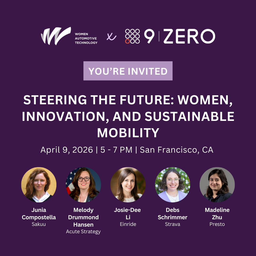 ​Join Women in Automotive Technology (WAT) and 9Zero’s EV/AV Cluster on Thursday, April 9th, for an evening exploring the future of sustainable transportation.
